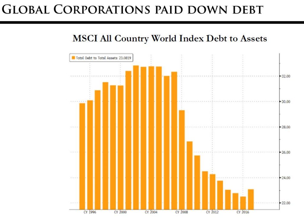 Figure 5. Global corporations have made significant progress in reducing the amount of debt on their balance sheets, opening the door to more capital investment.
